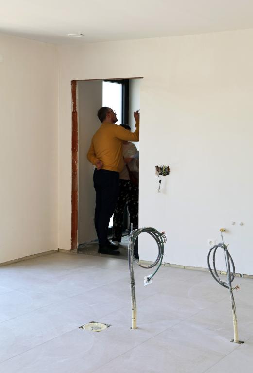 "De ene woning bevond zich in de afwerkfase", zegt Thijs. "De deelnemers kregen daardoor een goed zicht op hoe de ruwbouwomgeving van Brecht evolueert tot een echte thuis. Denk bijvoorbeeld aan hoe de vloer opgebouwd wordt, de leidingen weggewerkt worden, ramen en deuren worden geplaatst enzovoort. We tonen de deelnemers niet alleen de esthetische mogelijkheden, maar geven hen ook graag de technische achtergrondinformatie mee. Zo begrijpen ze beter hoe de keuzes op papier zich in de praktijk vertalen op de werf."