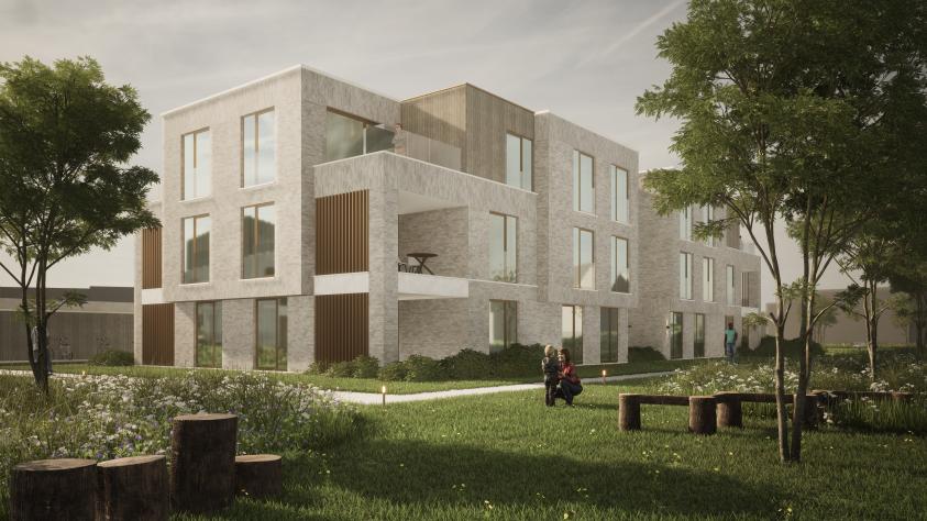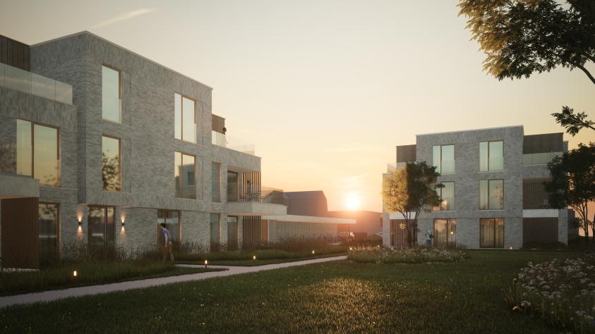 - Respect voor de omgeving: terrassen worden maximaal naar binnen gericht om inkijk naar omliggende tuinen te vermijden. De groene zones rondom de gebouwen vormen een zachte overgang naar de aanpalende woningen.