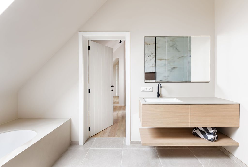 Voor deze nieuwbouwwoning in Loenhout verzorgde Ooms Woonrealisaties het volledige interieur op maat. Van binnenschrijnwerk tot keuken en badkamers: alles werd doordacht ontworpen en verfijnd afgewerkt.